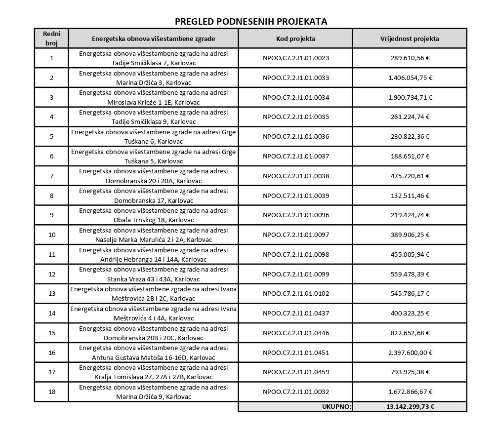 Također, s obzirom na najavljeno proširenje alokacije sredstava Europske unije od strane ministra gospodina Bačića, vjerujemo da će se uskoro potpisati ugovori i za preostalih 18 zgrada koje su zadovoljile uvjete Javnog poziva iz 2024. godine i trenutno se nalaze na listi čekanja.